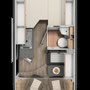 Es besteht die Möglichkeit durch Zubuchung des CampSleep eine 3. Schlafgelegenheit im Fahrerhaus zu erreichen oder durch eine Tischverbreiterung im Mittelbereich.